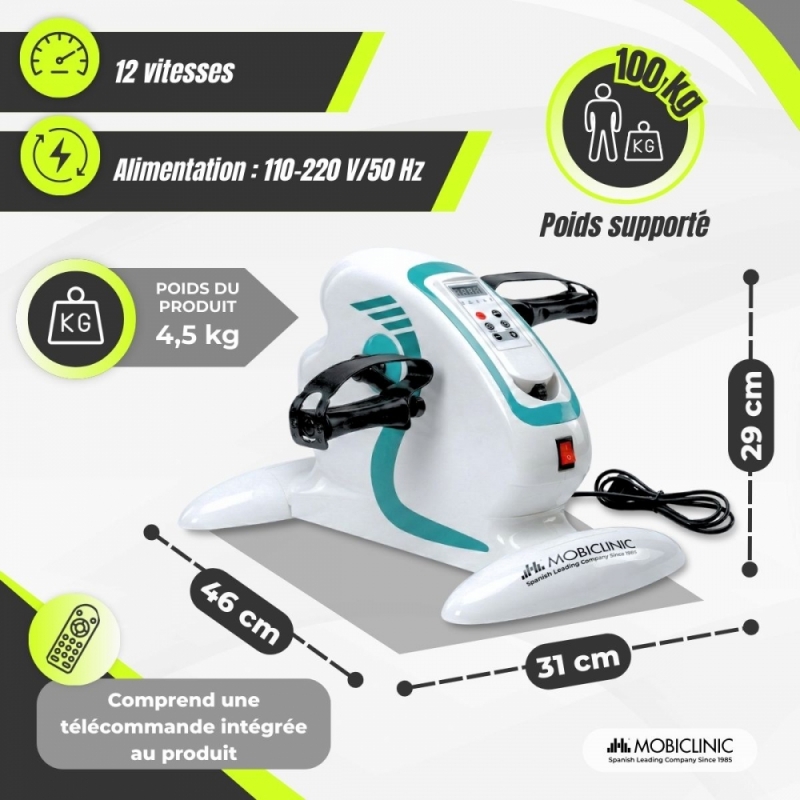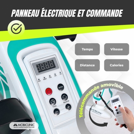 Il est conçu pour exercer les jambes et les bras, étant très ergonomique et adapté à n'importe quelle maison en raison de ses dimensions et de sa légèreté. A noter qu'il dispose d'une commande pour contrôler le boîtier de pédalier sans avoir à se baisser.