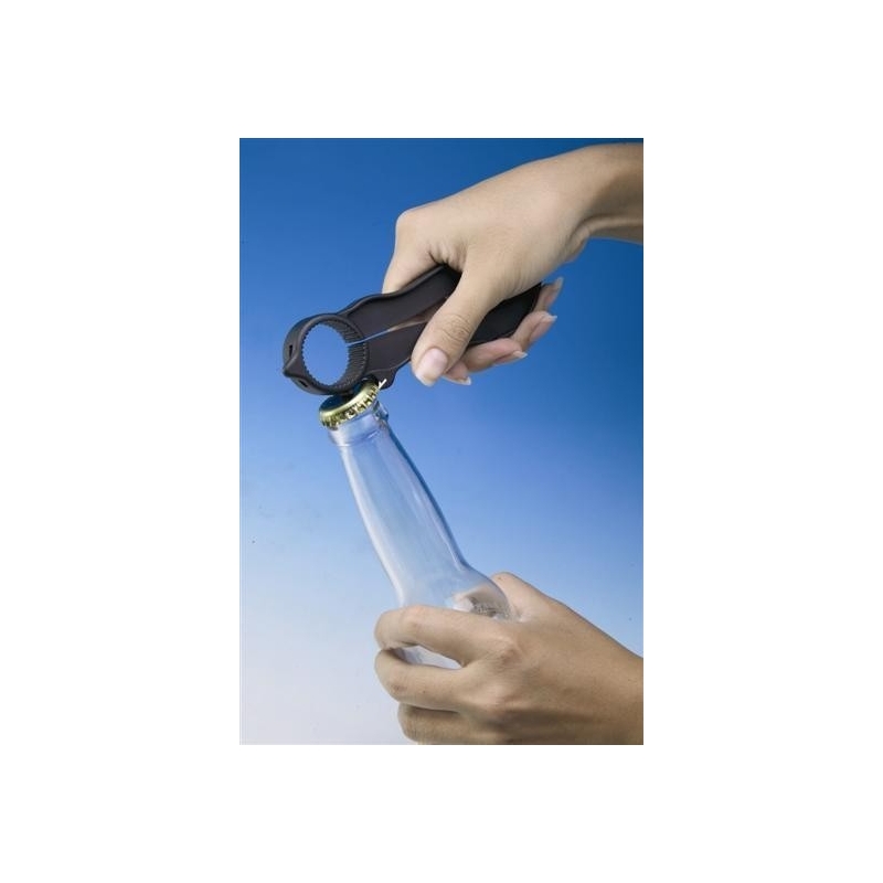 Grâce à cet ouvre-bouteille, le dévissage d’un bouchon est facilité. Il permet de gagner du temps tout en évitant les risques pour les personnes sujettes aux accidents domestiques dus à un problème de dextérité.