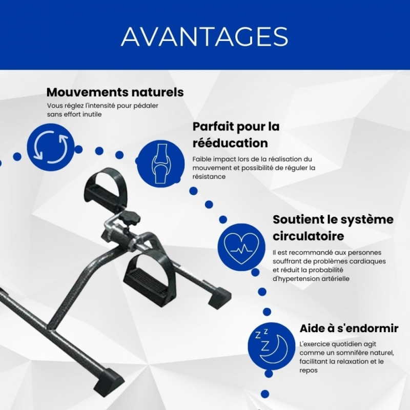 Le pédalier est l'un des appareils orthopédiques les plus populaires pour les exercices à domicile, car c'est un appareil d'exercice peu coûteux et innovant, très résistant et réglable, qui permet à toute la famille de faire de l'exercice.