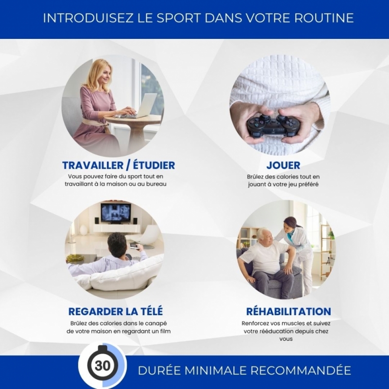Il est idéal pour faire de l'exercice à la maison de façon régulière ou pour les personnes qui débutent dans cette habitude d'exercice. De plus, le pédalier vélo est doté de quatre pieds en caoutchouc antidérapants qui assurent sa stabilité.