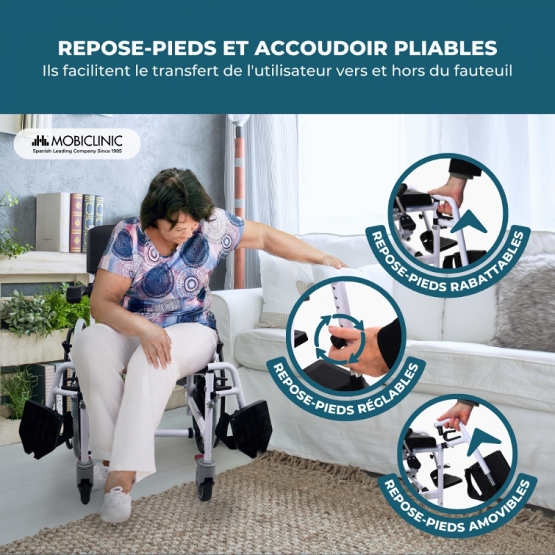 CONFORT MAXIMUM : Conçu pour améliorer la qualité de vie des personnes à mobilité réduite, Calígula combine des matériaux résistants et rembourrés qui garantissent une expérience confortable et sûre. Sa conception intuitive s'adapte aux besoins de l'utilisateur, facilitant ainsi son quotidien.