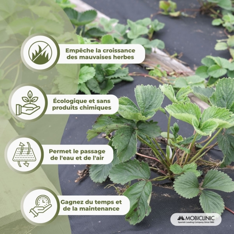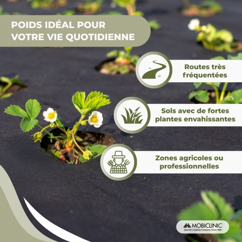 EFFICACE ET ÉCOLOGIQUE : Ce tissu anti-mauvaises herbes empêche la croissance des mauvaises herbes sans recours à des produits chimiques. Il agit comme une barrière physique, réduisant la croissance des mauvaises herbes sans nuire à la santé du sol.