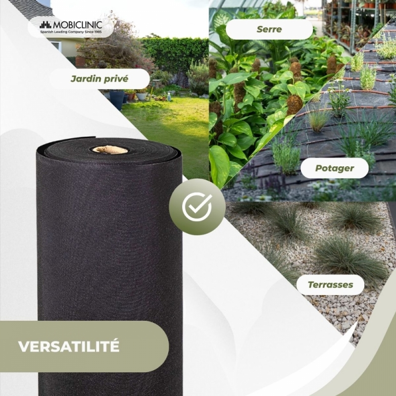 FACILE À INSTALLER : Ce filet anti-mauvaises herbes est facile à installer et se découpe aux ciseaux pour s'adapter à tous les espaces. Son installation ne nécessite aucun outil particulier, ce qui le rend idéal pour un usage domestique et professionnel. Réutilisable et facile à repositionner, il suffit de le recouvrir du sol et de le fixer avec des clous.