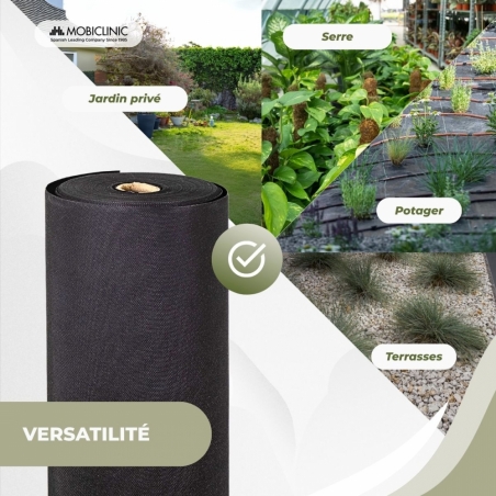 Son tissu respirant et perméable laisse passer l'eau et l'air, contribuant ainsi à maintenir l'humidité du sol sans compromettre l'arrosage régulier. Résistant aux UV, il résiste aux rayons directs du soleil sans se détériorer. Facile à installer, il peut être découpé aux ciseaux pour s'adapter à différentes tailles.