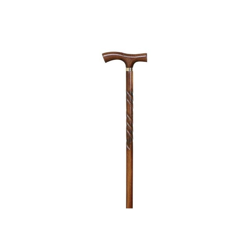 Cette béquille de couleur marron est fabriquée en hêtre avec un anneau de couleur argentée sur la poignée. Le bâton possède un joli détail sculpté dans le bois lui-même.