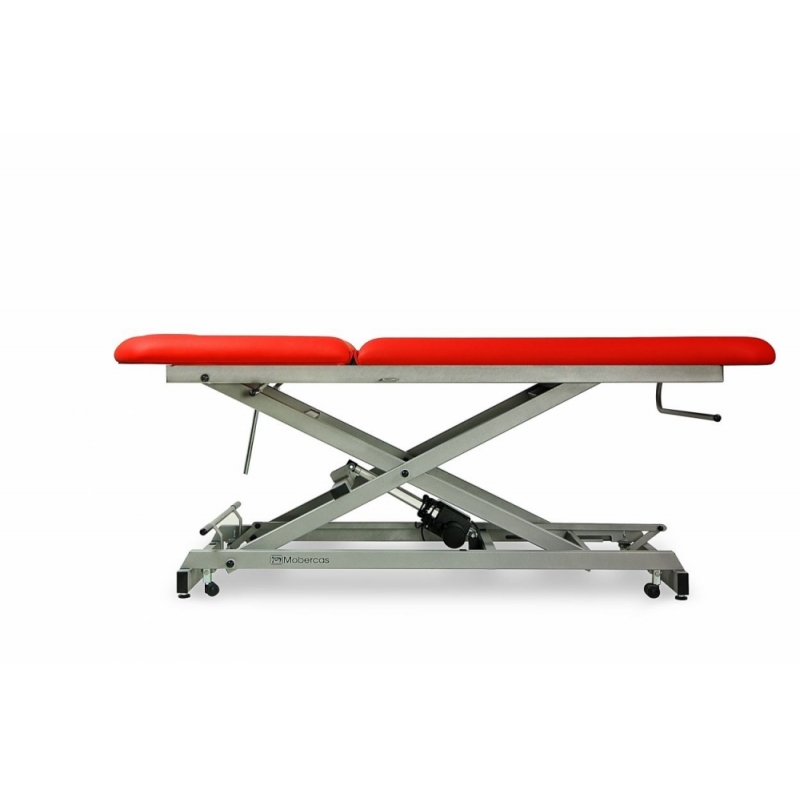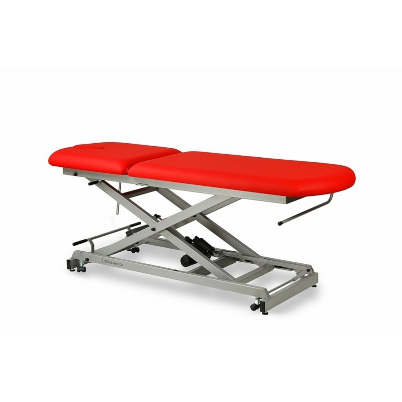 Brancard d'examen électrique 2 sections à montée droite sans déplacement latéral, porte-rouleau, coiffe faciale et roues escamotables.
