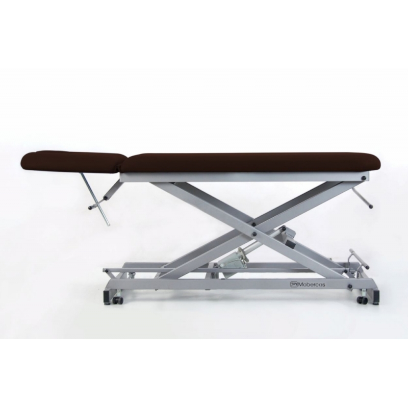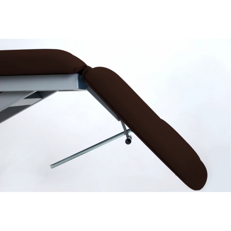 Brancard d'examen électrique à 2 sections avec dossier inclinable négatif et montée droite sans mouvement latéral, porte-rouleau, capuchon facial et roues escamotables.