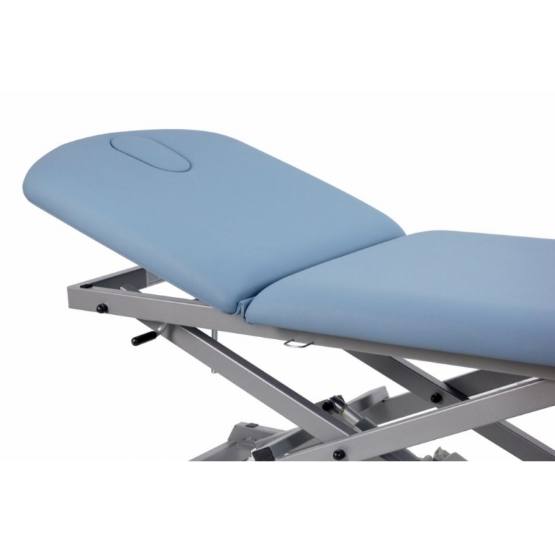 Brancard d'examen électrique à 2 sections, à montée droite sans mouvement latéral, porte-rouleau et couvre-visage.