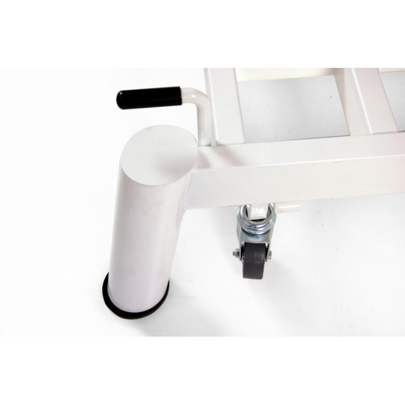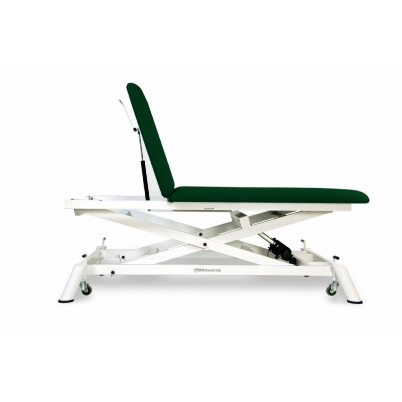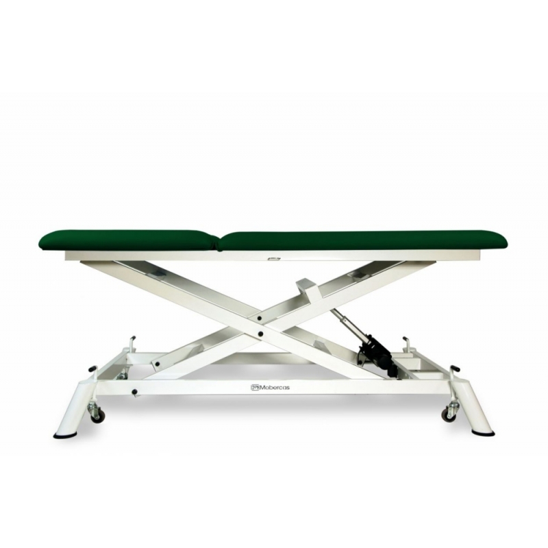Brancard électrique type ciseaux Bobath à montée droite sans déplacement latéral, à 2 sections et roues escamotables. Dimensions de 190x100.