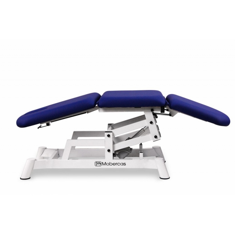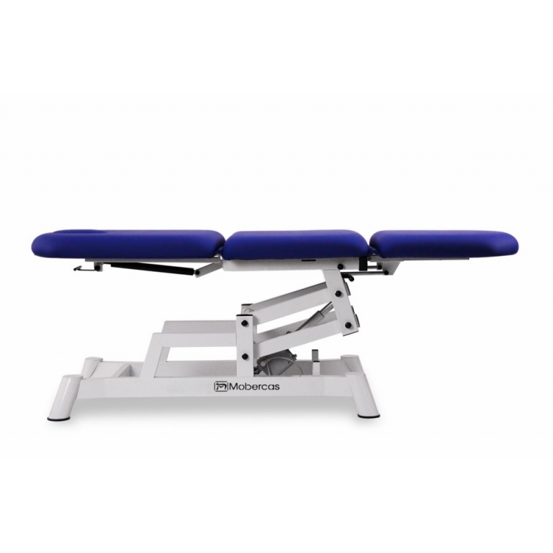 Chaise électrique de type table à 3 sections avec réglage en hauteur au moyen d'un bouton de commande.
