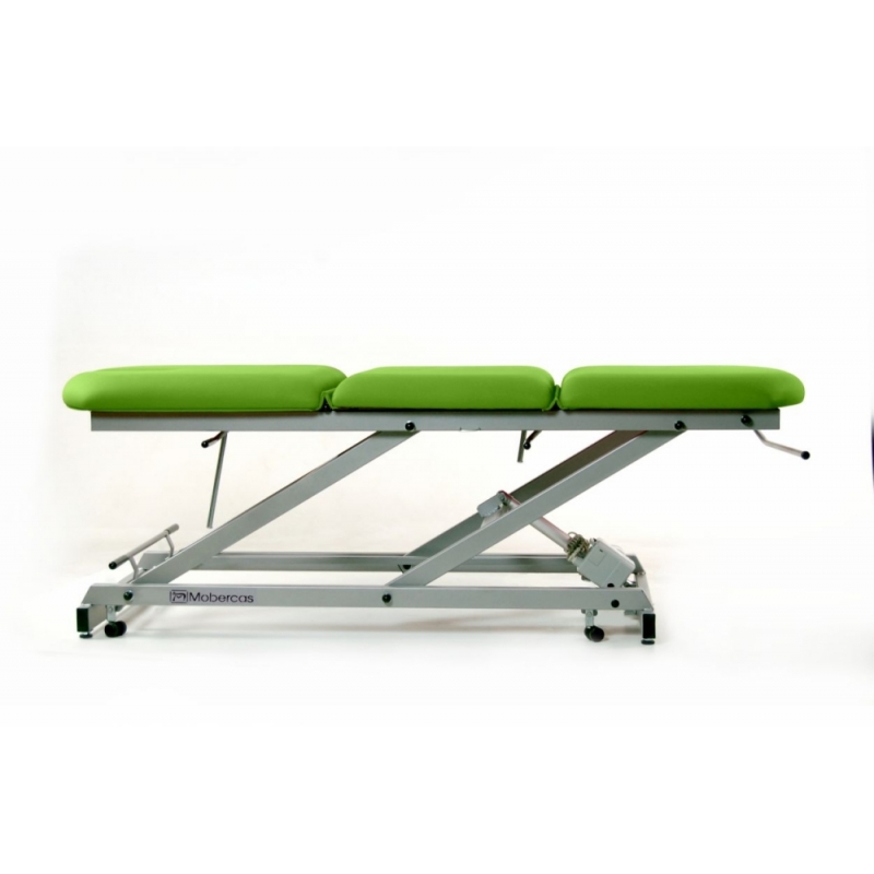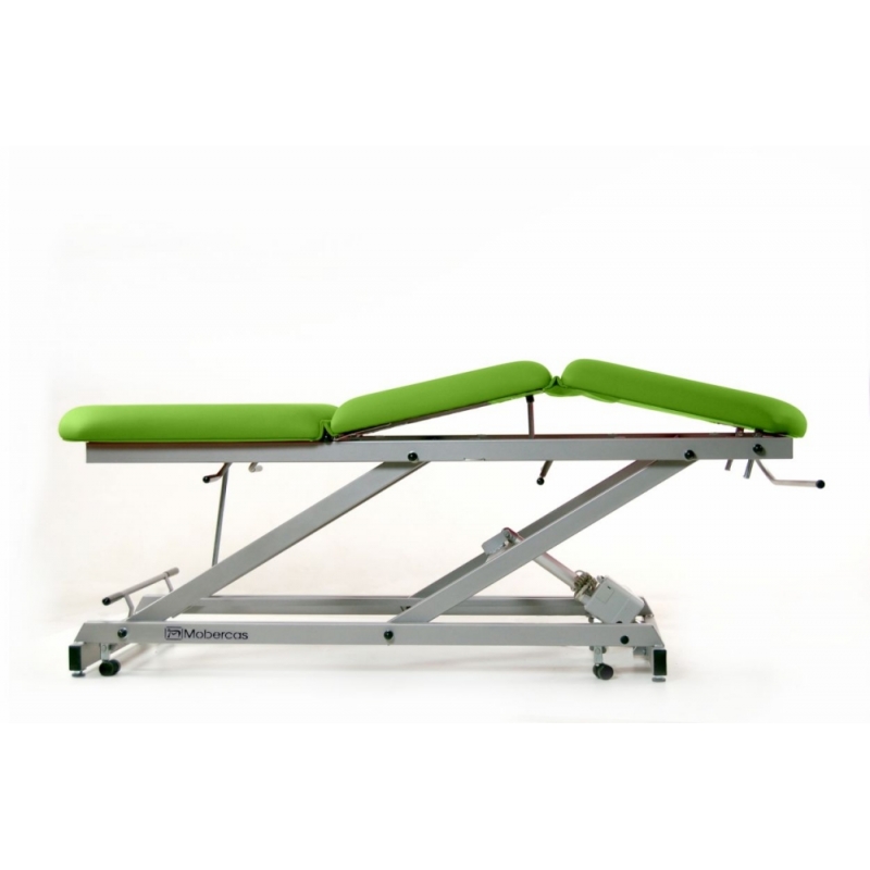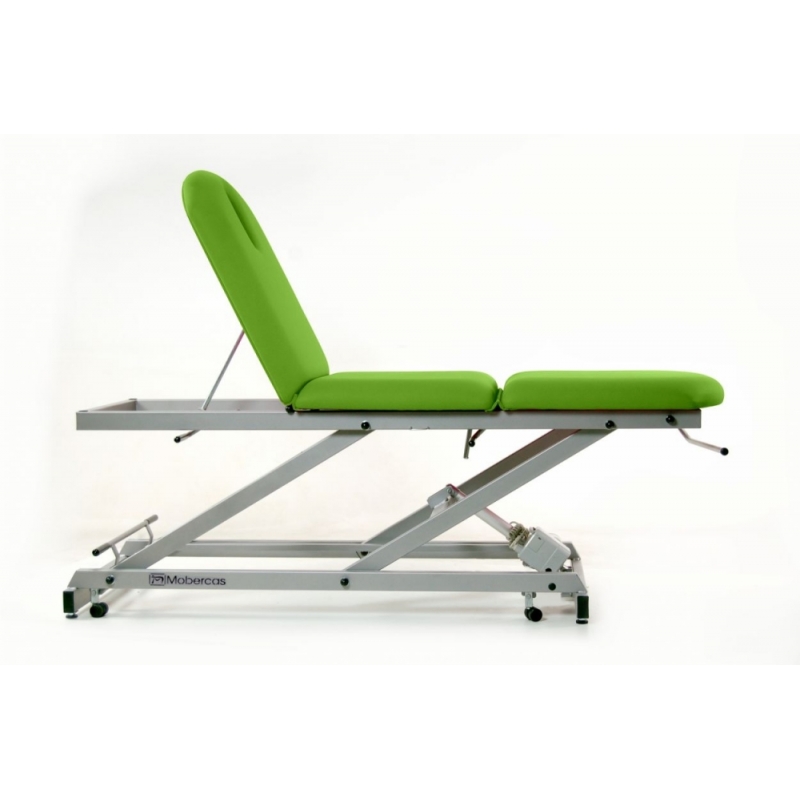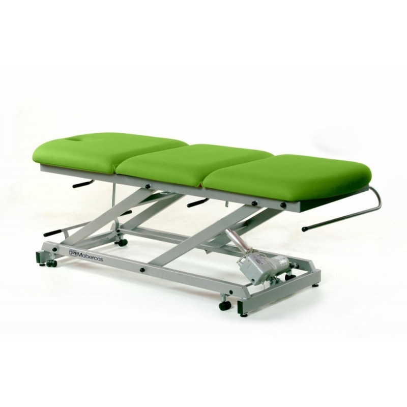 Divan d'examen électrique à 3 sections avec pliage central manuel, porte-rouleau de papier toilette, couvre-visage et roues escamotables.