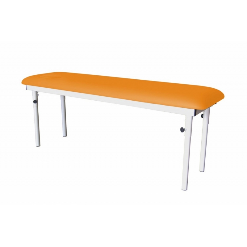Brancard fixe avec un corps réglable en trois hauteurs. Comprend un porte-rouleau et un capuchon facial.