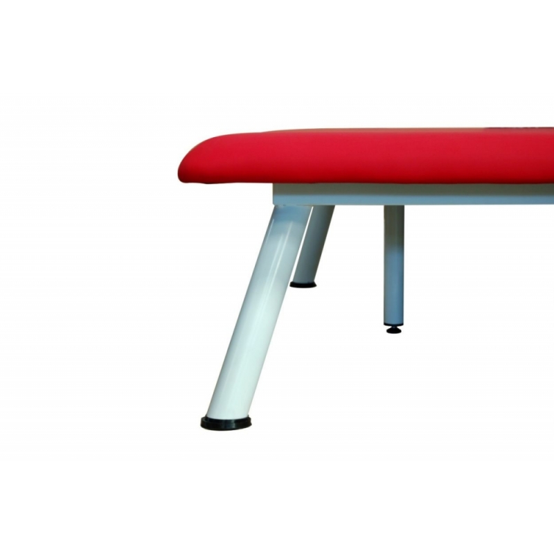 Brancard Bobath à 1 section à hauteur fixe, avec 4 pieds extérieurs et 4 pieds intérieurs (avec niveleurs) qui lui confèrent une robustesse et une stabilité maximales dans ce type de brancard.