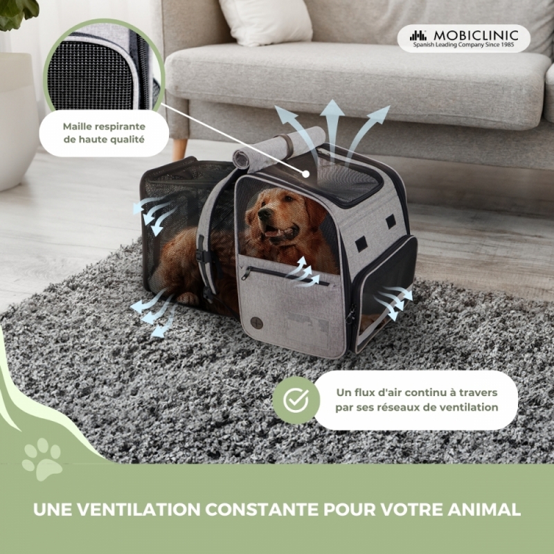 Sac de transport pour animaux | Extensible | Pliable | 37x29x37,5 cm | Ventilation | Mangeoire + sacs | Tula| Mobiclinic