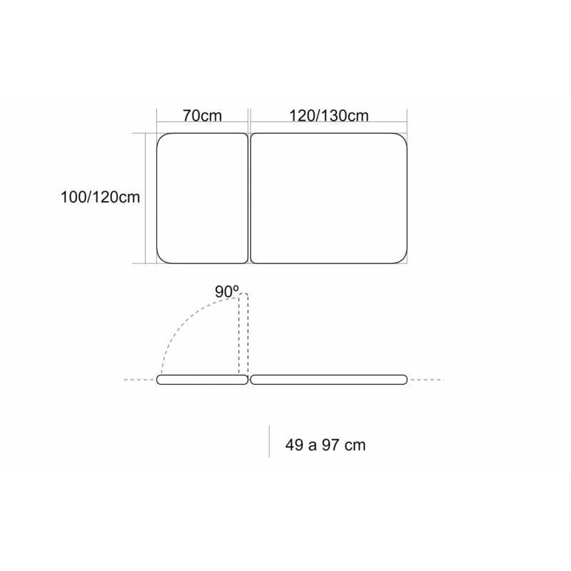 Brancard hydraulique Bobath 2 sections avec roues rétractables. Mesures 190x100.