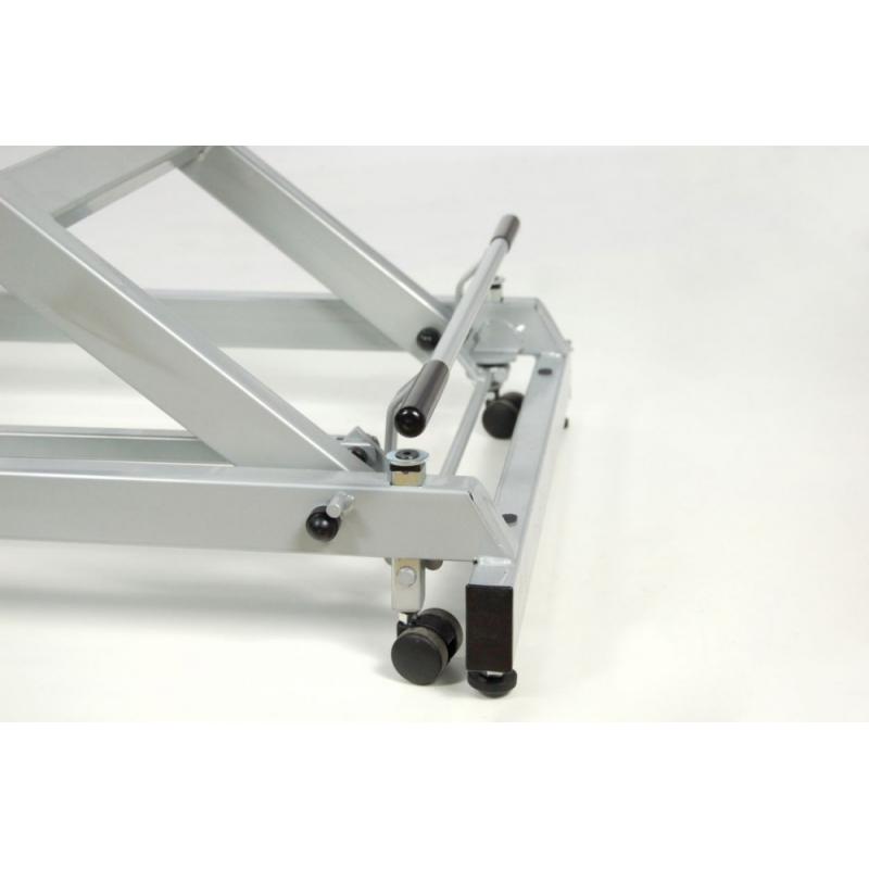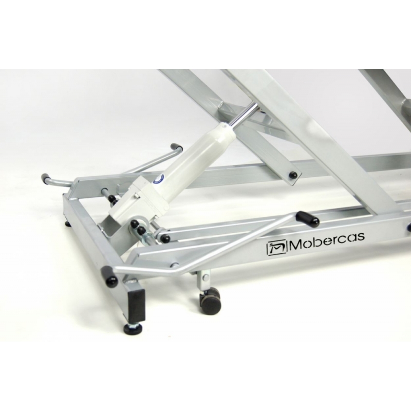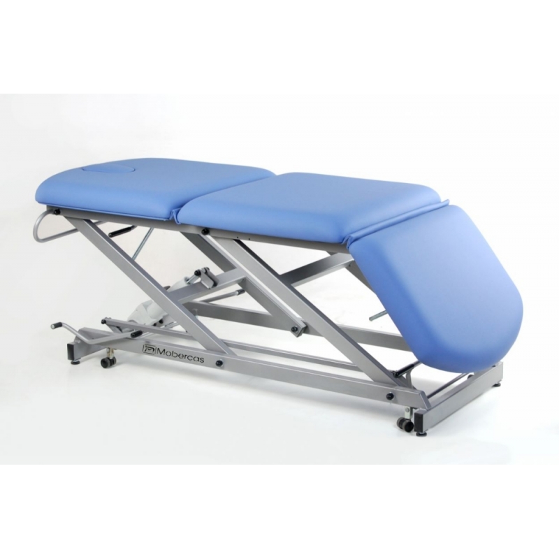 Divan hydraulique de type fauteuil à 3 sections avec porte-rouleau, capuchon facial et roues rétractables.