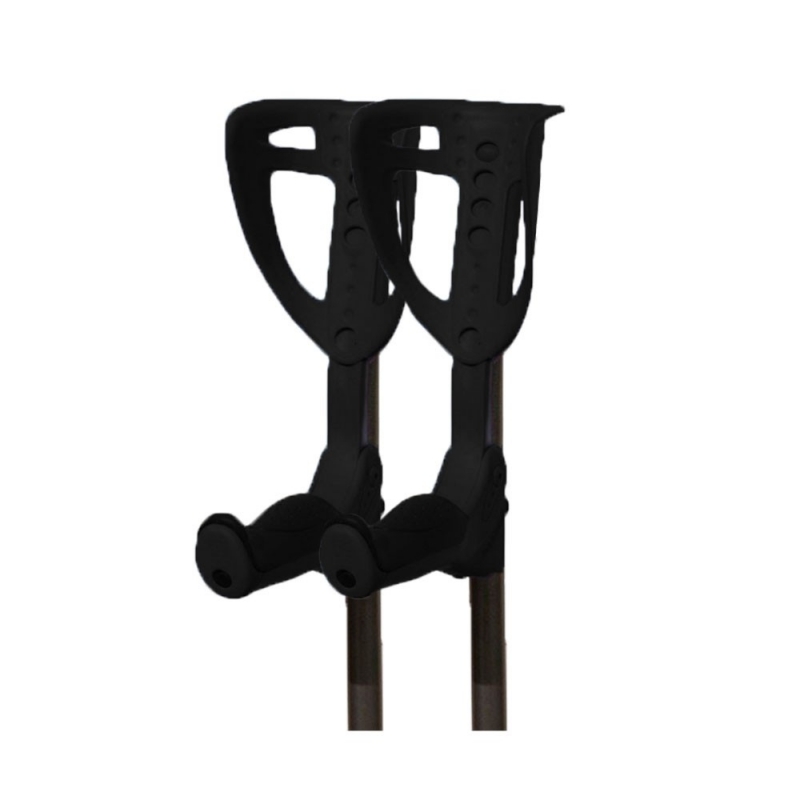 Paire de béquilles Ergotech avec poignées rembourrées ultra-douces qui apporte un soutien supplémentaire à la personne qui a besoin d'aide pour se déplacer.
