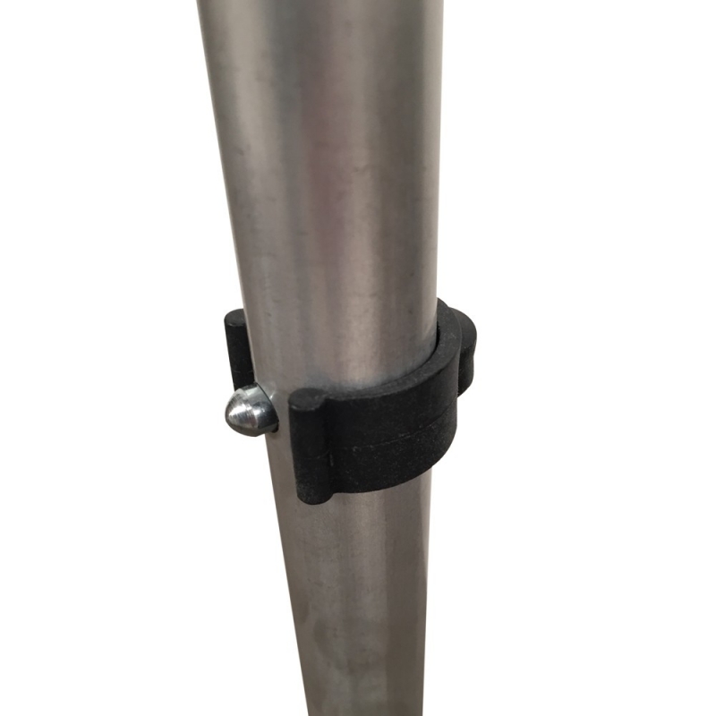 La béquille est réglable en hauteur au moyen d'un système de clip pour s'adapter à l'utilisateur.