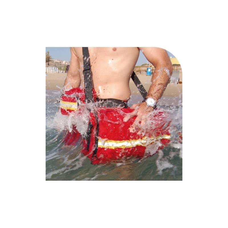 Sac de premier secours SAIL'S 100% étanche avec système de fermeture imperméable enroulable et avec boucle rapide, système de fermeture Velcro, bandoulière rembourrée amovible, bandes réfléchissantes et coutures thermo scellées.