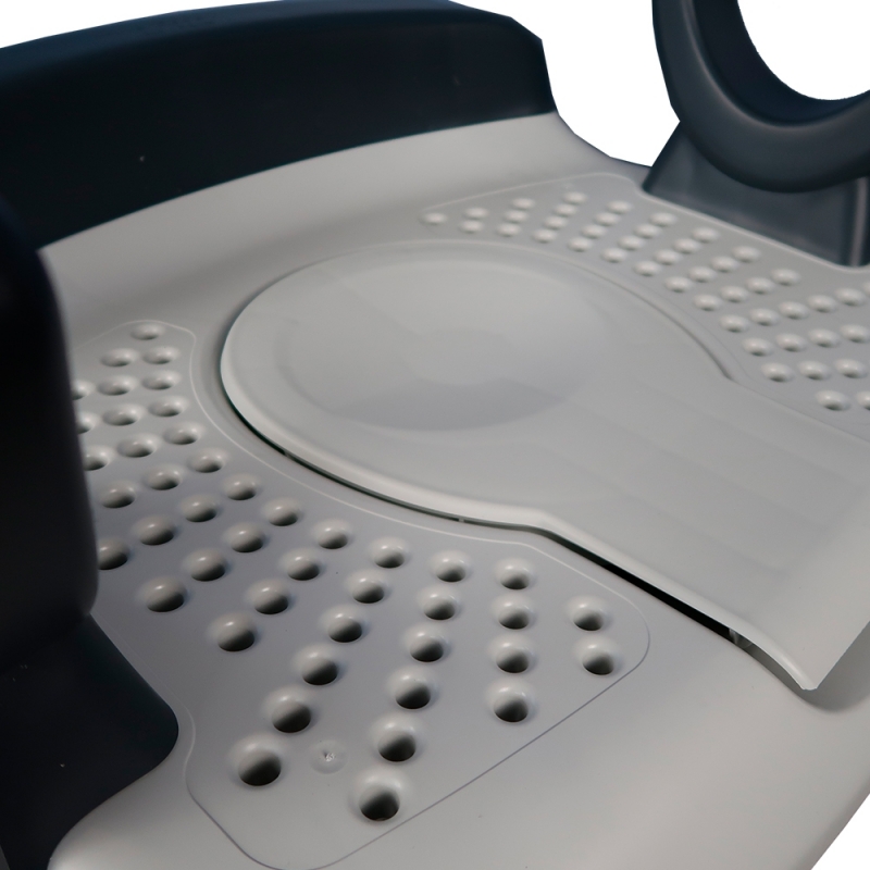 La chaise AQ-TICA a 2 fonctions : elle vous aide dans les soins du corps et l'hygiène personnelle. Elle peut être utilisée comme chaise de toilette ou de douche et est disponible en gris et sans dossier. AQ-TICA est fourni sous forme de kit dans une boîte et peut être facilement assemblée sans outils.