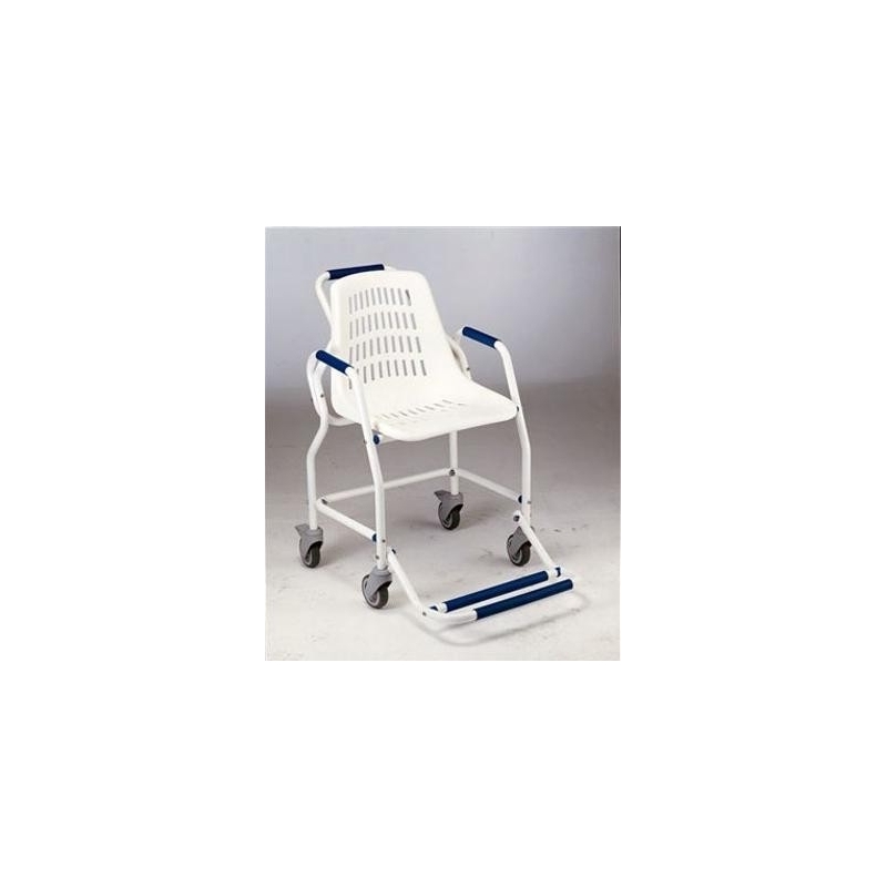 Cette chaise de douche en aluminium avec revêtement epoxy aide à la fois par patient et au convoyeur à l'hygiène personnelle.