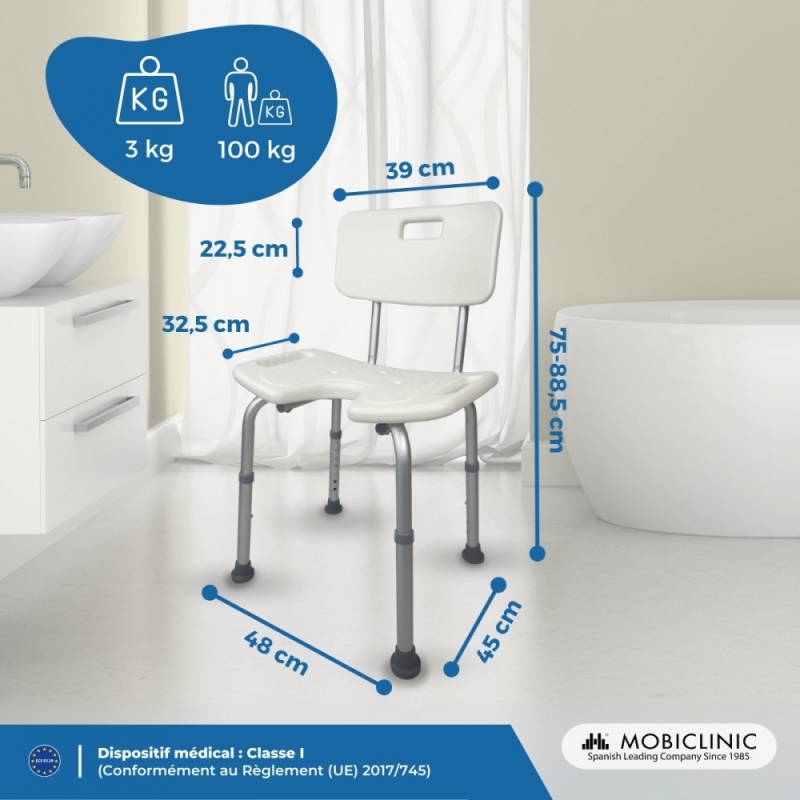 La chaise de douche "Marisma" est spécialement conçu pour offrir un maximum de sécurité et de confort à l'utilisateur.