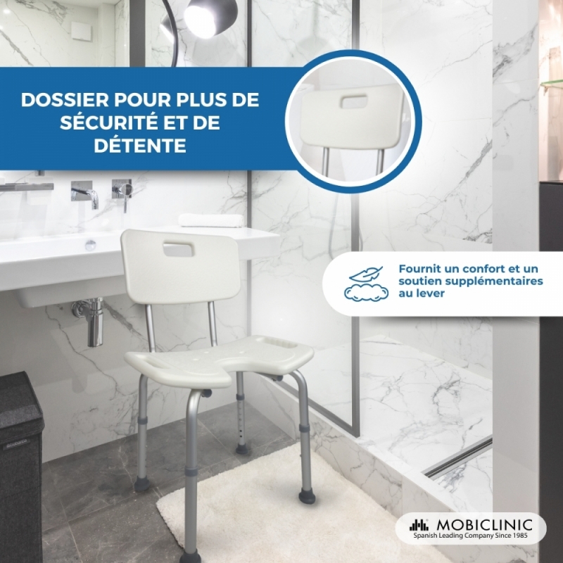 Le siège a une finition en U, ce qui facilite l'hygiène de la zone génitale.