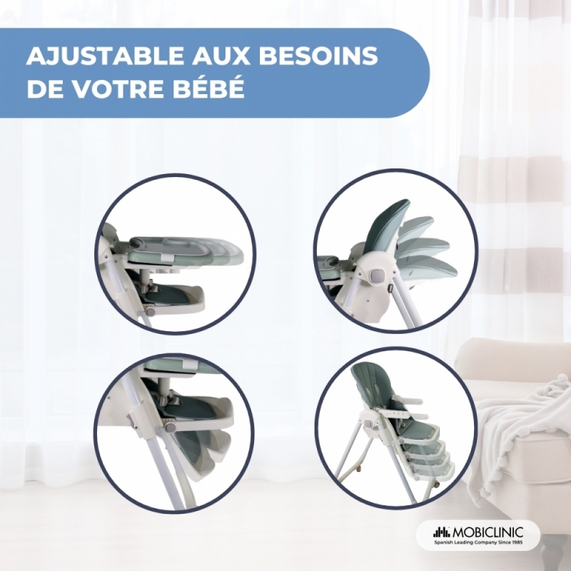 RÉGLAGES MULTIPLES : Cette chaise haute offre une multitude de réglages pour s'adapter à la taille et au confort de bébé : sa hauteur peut être réglée sur 7 positions différentes, placer le plateau plus ou moins près et positionner le repose-pieds plus ou moins droit selon le besoin et l'utilisation que vous voulez donner