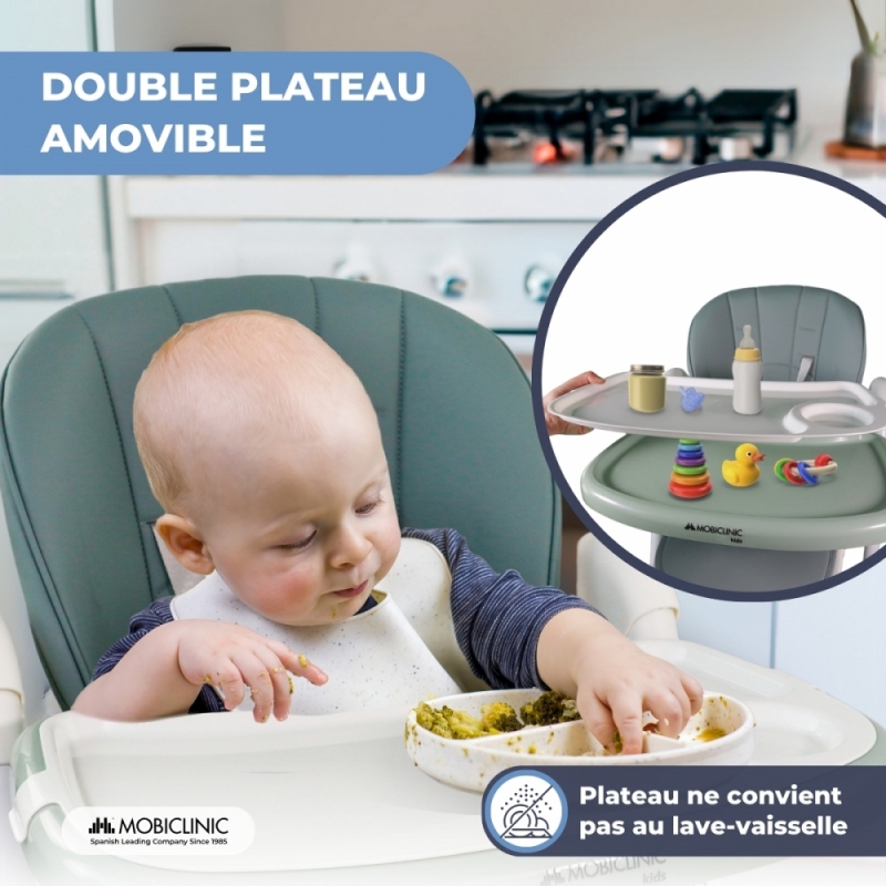MULTIFONCTIONNALITÉ : La possibilité d'extraire le plateau facilite son utilisation prolongée comme siège lorsque l'enfant est plus âgé, à condition qu'il respecte le poids maximum supporté. Cela permet à l'enfant de jouer, de peindre, d'interagir avec l'environnement ou même d'apprendre à utiliser les couverts.