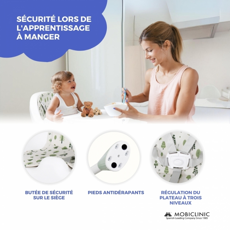 RÉGLABLE EN 2 HAUTEURS : La chaise haute Forest peut être réglée sur 2 hauteurs, faisant office de chaise haute ou basse. Cela en fait une option parfaite car elle s'adapte aux besoins du petit, étant multifonctionnelle et évolutive . Il est utilisé à la fois pour nourrir le bébé et pour jouer ou réaliser toute activité au fur et à mesure de sa croissance. Ainsi, ils apprendront également à différencier l’heure des repas de l’heure du jeu.