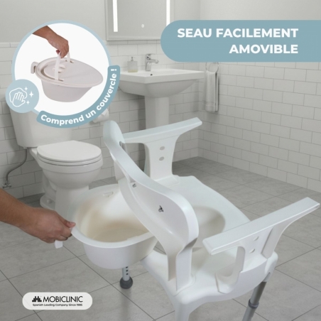 Le siège de toilette amovible, d'une capacité de 3 500 ml et pouvant supporter une charge de 6 kg, offre une plus grande autonomie et réduit les besoins de vidage fréquents. Son nettoyage est rapide et facile, garantissant ainsi une utilisation hygiénique. Grâce à ses pieds réglables, ce siège s'adapte à six niveaux de hauteur, avec une hauteur d'assise de 42 à 55 cm et une hauteur totale de 75 à 88 cm. Il s'adapte ainsi à la taille et aux besoins de chaque utilisateur.