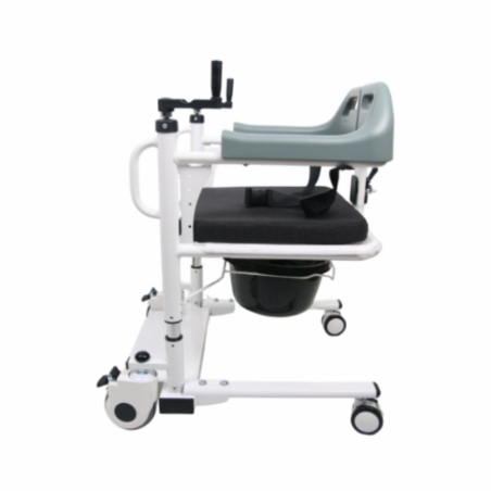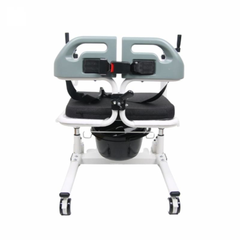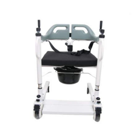 Son ouverture large et son mécanisme de fermeture rapide facilitent l'installation de l'utilisateur et réduisent l'effort physique du soignant. Il comprend également un coussin rembourré amovible et lavable, idéal pour une hygiène optimale, et un plateau de toilette amovible, transformant ainsi le fauteuil en toilettes portables pratiques et fonctionnelles.