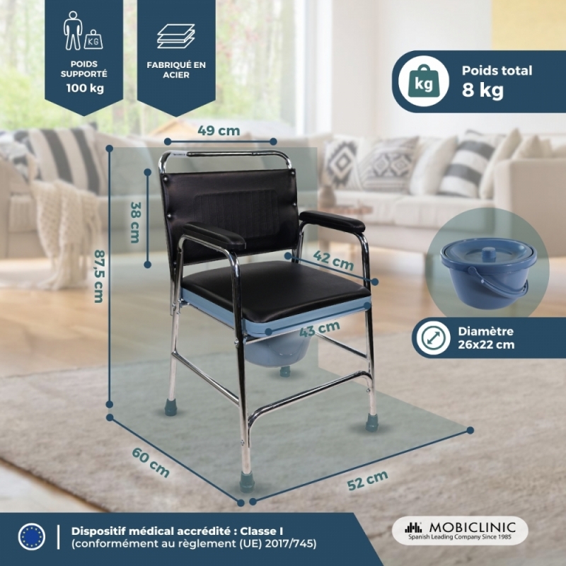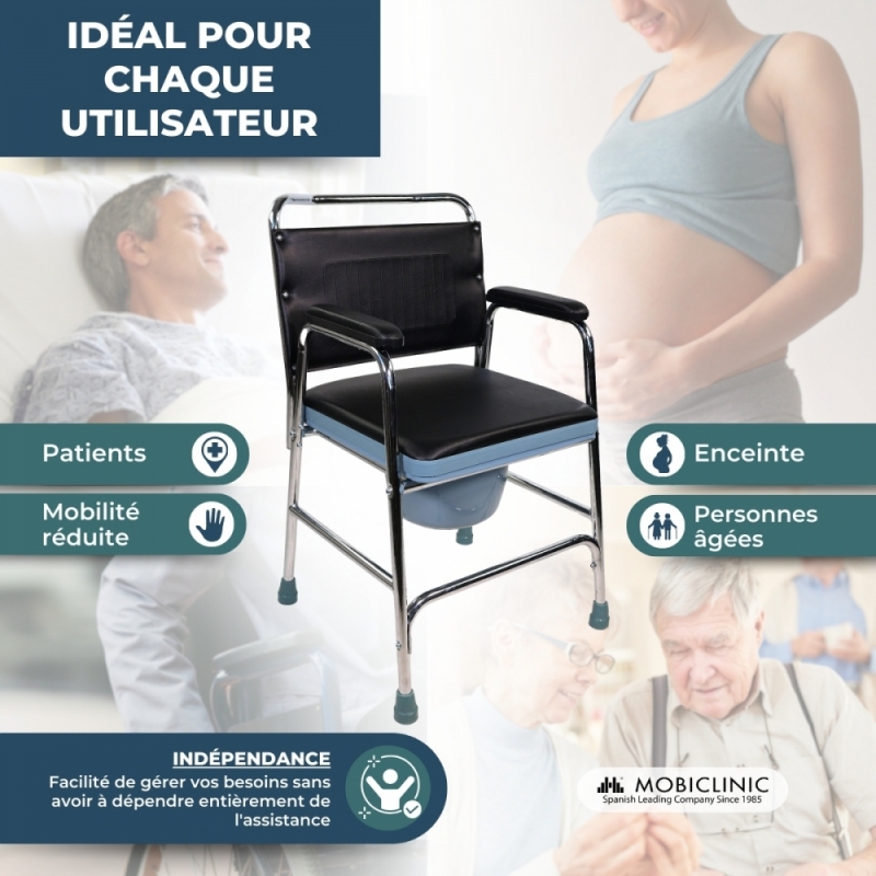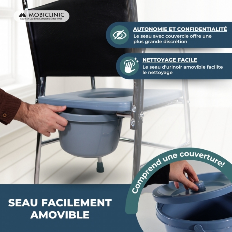 Il s’agit sans aucun doute d’une offre à ne pas manquer; la chaise percée avec accoudoirs Velero offre confort et facilité d'utilisation à la portée de tous.