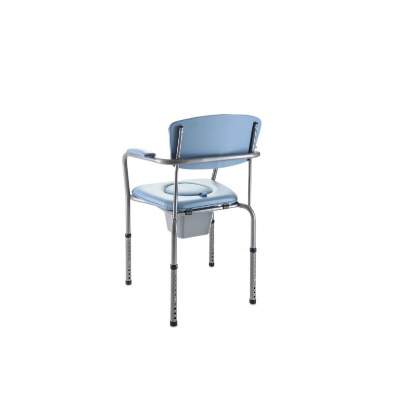 La chaise orthopédique pour salon avec WC et accoudoirs réglables en hauteur, de couleur bleue, se transforme en réel toilette portable, idéal pour les personnes qui présentent des difficultés de mobilité comme les personnes âgées, handicapées, ou hospitalisées.