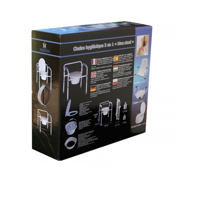 Avec cette chaise, vous obtenez 3 produits en 1 : vous pouvez l'utiliser comme rehausseur de toilettes, comme chaise percée pour la chambre à coucher ou comme support auxiliaire pour les toilettes.