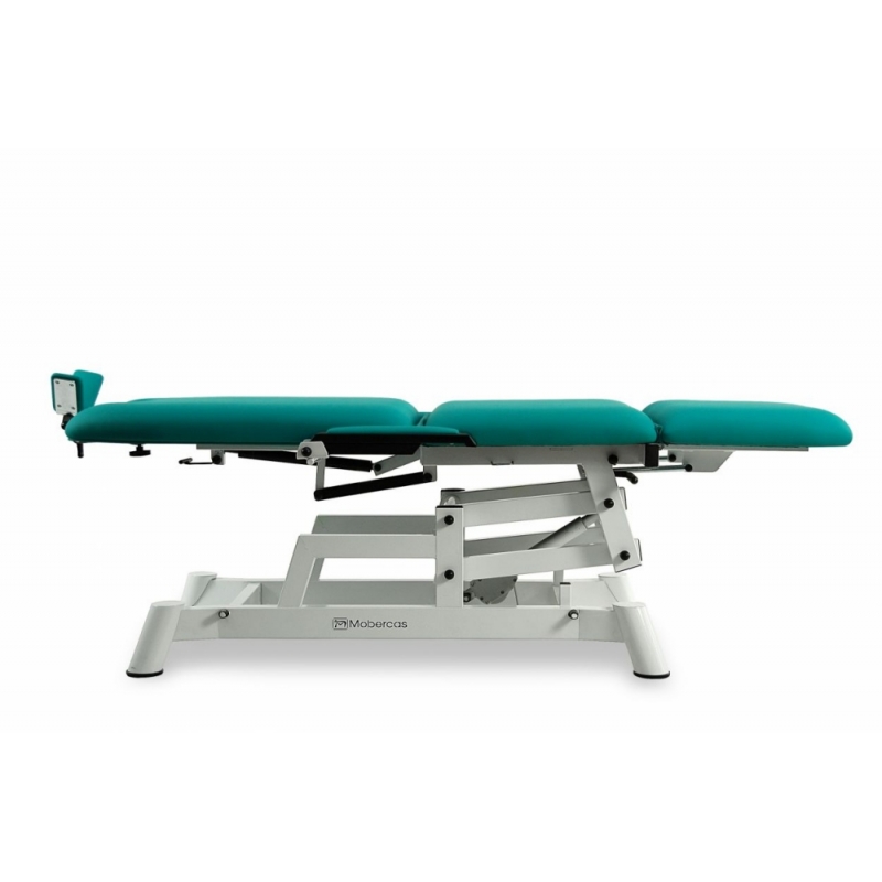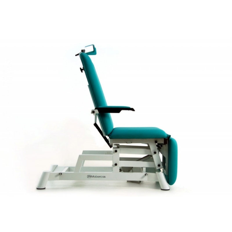 Fauteuil d'ophtalmologie électrique avec réglage en hauteur par commande manuelle. Comprend des accoudoirs rabattables à 90º (métalliques et rembourrés) et un appui-tête ergonomique pour l'ophtalmologie. Position de Trendelenburg compensée.