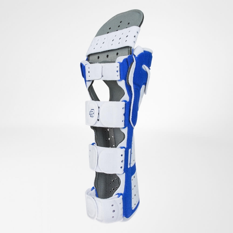 Trois tiges anatomiques en aluminium préformées immobilisent le poignet dans une position fonctionnelle et le déchargent. Ils stabilisent également une partie de l'avant-bras et limitent les mouvements d'extension, de flexion et de rotation de la main en toute sécurité.