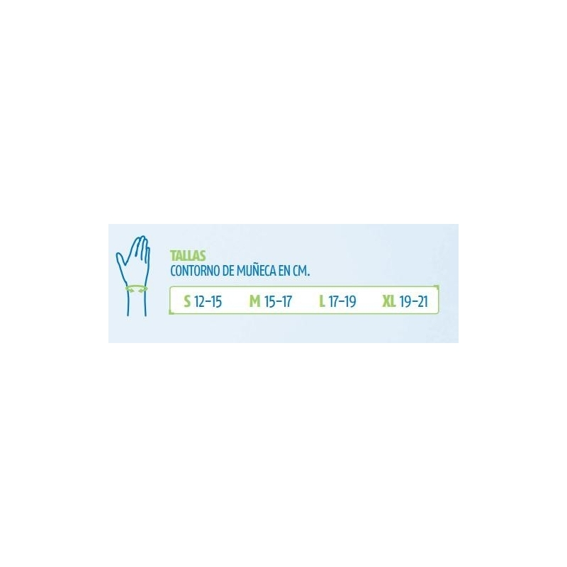 La taille est mesurée en fonction de la circonférence du poignet en cm. Tailles disponibles : S, M, L, XL.