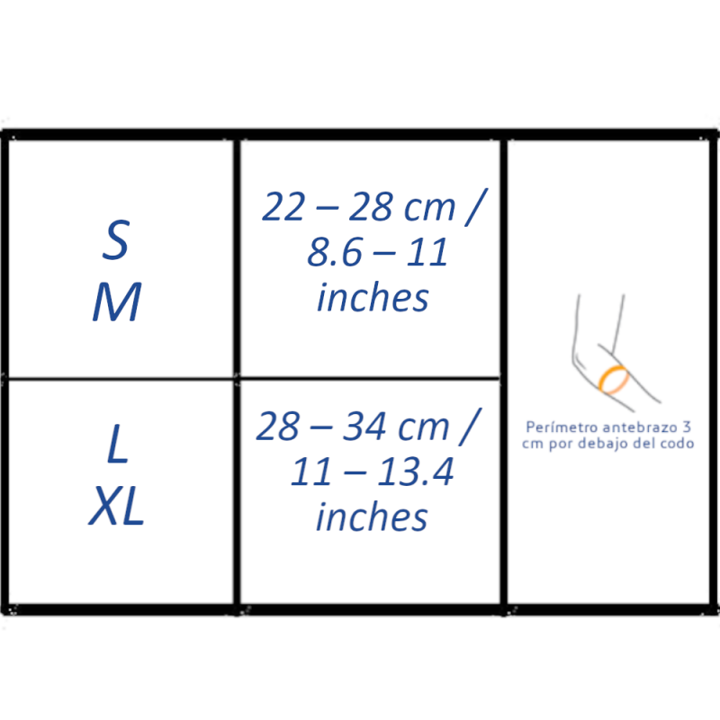 Attelle en matériau silicone multicouche (Silprene-F), respirante et élastique, qui permet de réguler la compression et la traction exercées sur la zone affectée en fonction des besoins de chaque patient. Indiqué pour le traitement des épicondylites et des épitrochléites.