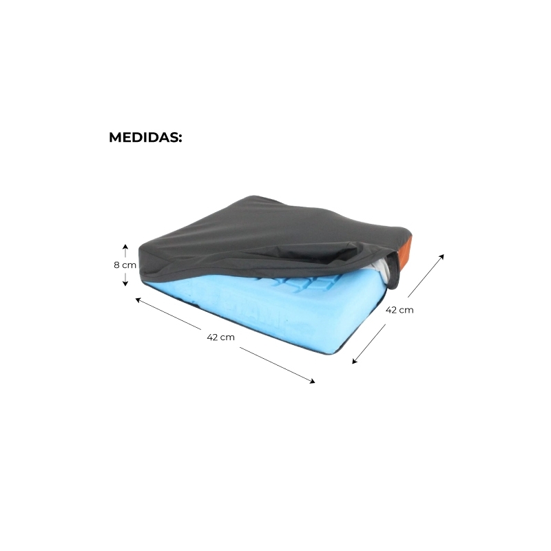 Coussin ergonomique en mousse viscoélastique à effet de mémoire et forme ergonomique. Réduisez les pressions dans les zones les plus exposées: sacrum et ischium. La forme est dimensionnée par rapport à l'ischion. On a même envisagé l'adoption fréquente d'une posture incorrecte, que ce coussin empêche en bloquant l'ischion lorsqu'il avance.