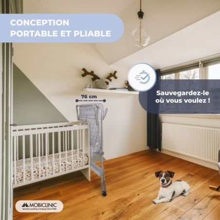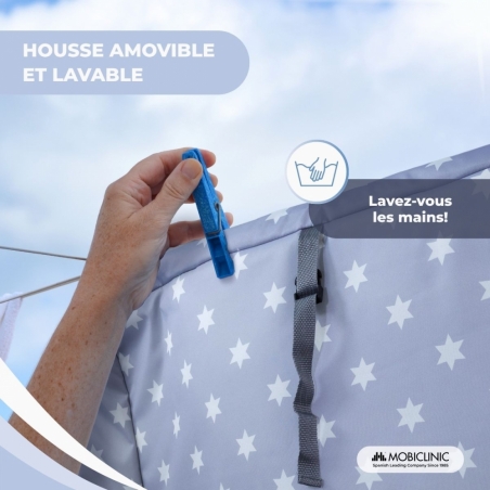 Il dispose de plusieurs compartiments de rangement, dont un panier latéral de grande capacité, une barre pour suspendre les serviettes ou les vêtements, et une étagère inférieure idéale pour les objets fréquemment utilisés. Il est également pliable pour gagner de la place ou faciliter le transport. Sa housse est amovible et lavable pour une meilleure hygiène et un entretien optimal.