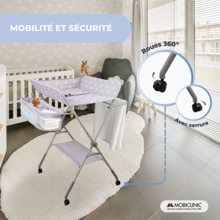 PRATIQUE ET STABLE : Elle est équipée de quatre roulettes pivotantes à 360 degrés pour une mobilité aisée dans n'importe quel espace. De plus, des freins individuels maintiennent la table à langer en place pendant l'utilisation, garantissant ainsi sa stabilité et évitant tout mouvement inattendu.