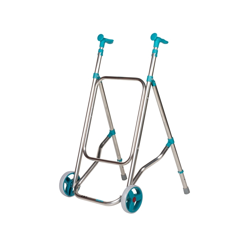 Ce déambulateur se plie facilement en soulevant les tubes qui vont de l'avant aux jambes. En outre, il est doté de poignées ergonomiques réglables en hauteur sur 5 positions.