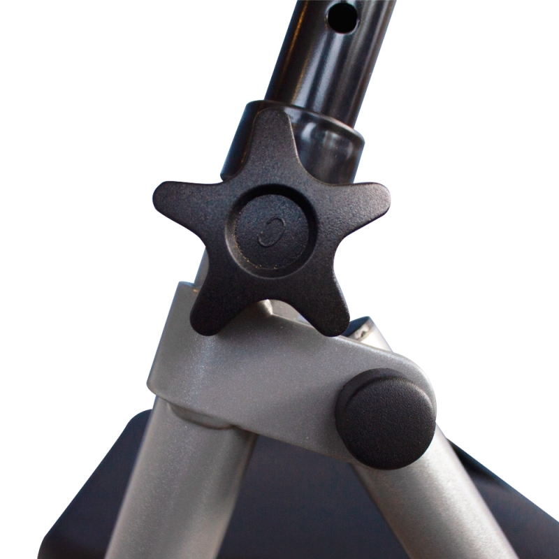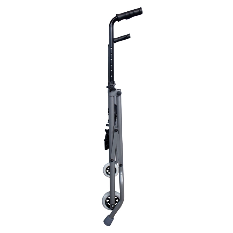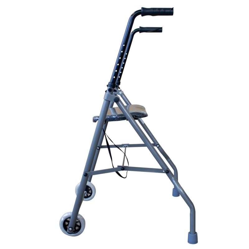Le déambulateur pliant avec assise en PVC est doté de poignets anatomiques réglables en hauteur. Il est facile à plier grâce à son axe central.