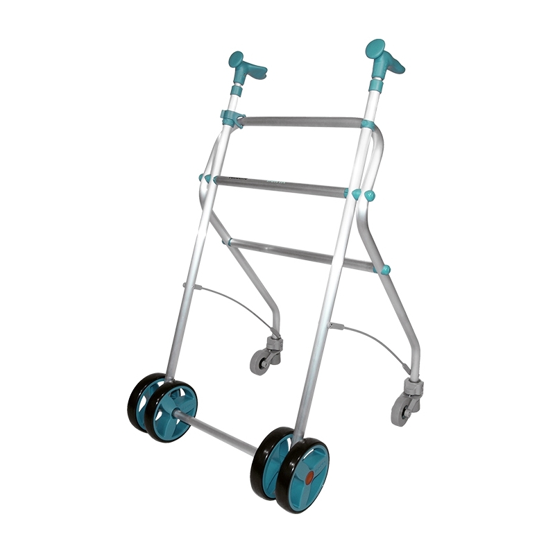 Le déambulateur pour personnes âgées est très résistant grâce à sa structure en aluminium, ses poignées ergonomiques réglables en hauteur et ses doubles roues avant fixes.