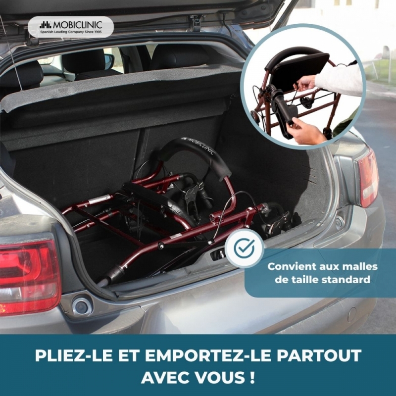 PORTES ET COFFRE : Ce déambulateur a une largeur totale de 60 cm, il peut donc passer à travers des portes de largeur standard de 62,5 cm. De plus, comme ce déambulateur plié ne mesure que 24,5 cm, il est assez facile à transporter. Assurez-vous des mesures de vos portes et de votre véhicule pour vérifier qu'elles vous conviennent.