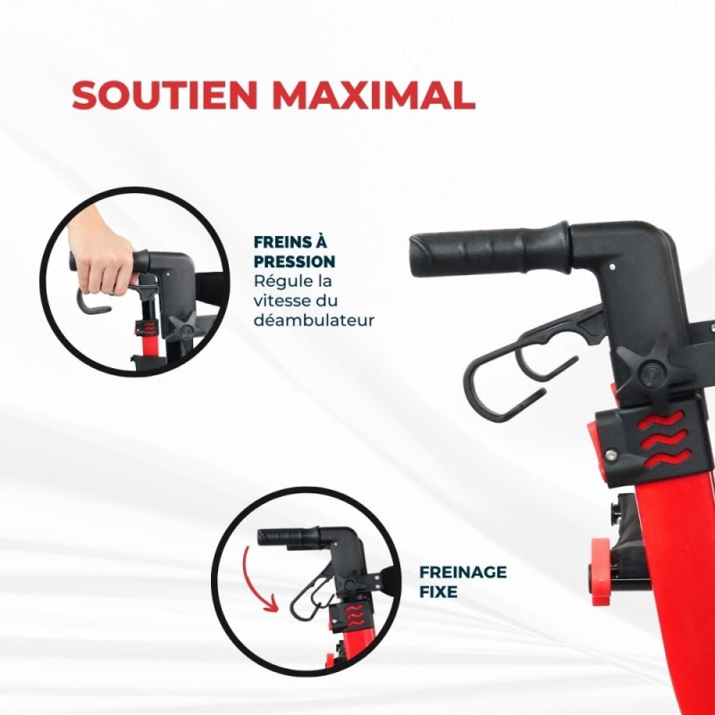 SÛR : Ce déambulateur pour adultes dispose de deux types de freins qui s'activent facilement en appliquant une pression sur les poignées ou les leviers, à la fois des freins de verrouillage et des freins de déplacement pour garantir une grande sécurité à l'utilisateur et éviter d'éventuelles chutes.