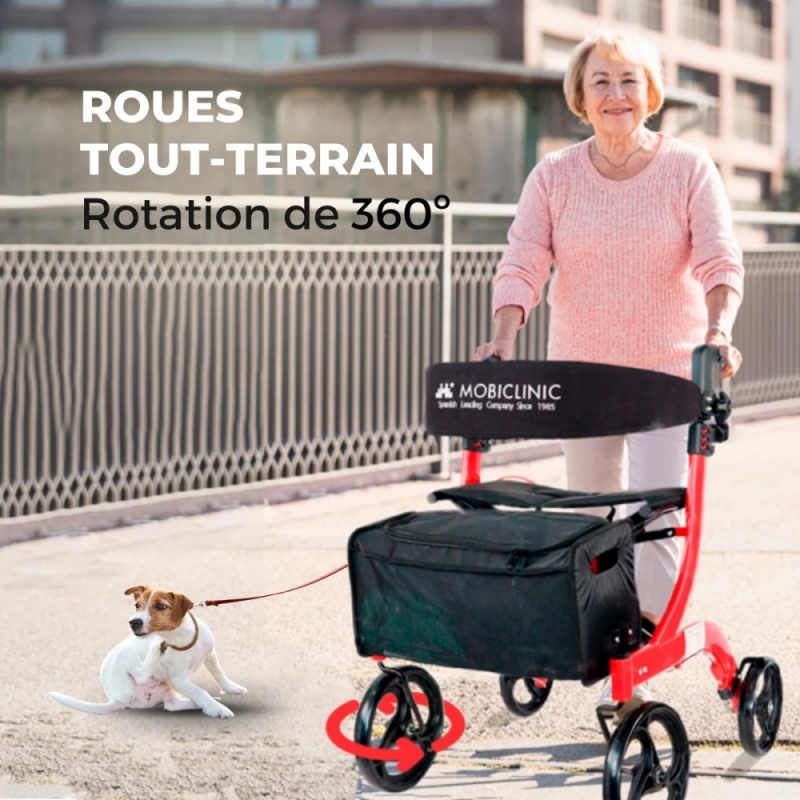 Ce modèle de déambulateur à quatre roues est une option polyvalente et confortable pour les personnes âgées et les personnes à mobilité réduite. Sa conception et son système de pliage simple le rendent facile à transporter et à manipuler par tout utilisateur. Son cadre en aluminium et son châssis en acier en font un déambulateur léger mais à la fois résistant, grâce également à la robustesse de ses roues avant jusqu'à 23 cm de diamètre. Son design moderne et ergonomique permet d'adapter son utilisation pour parcourir une grande variété de scénarios.