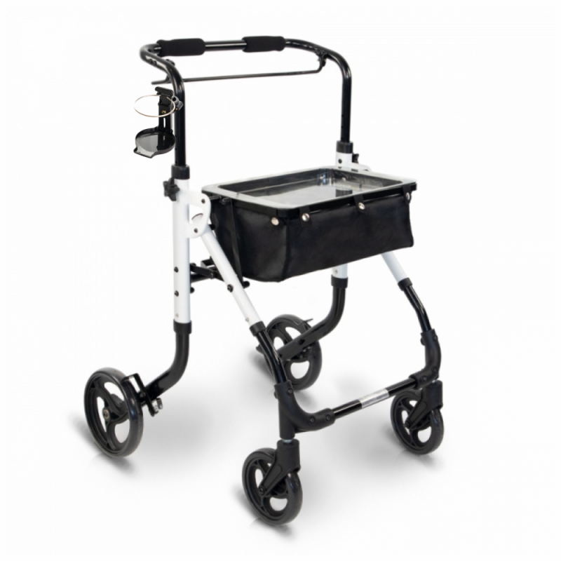 - Walker Olimpo : c'est un déambulateur pliable pour adultes au design innovant et léger. Sa fabrication en aluminium offre une grande résistance et agilité dans les mouvements, ce qui permet aux personnes peu musclées de n'avoir aucun problème à l'utiliser. De même, ses quatre roues anti-crevaison sont conçues pour garantir la stabilité de l'utilisateur et surmonter confortablement les petits obstacles au sol, à l'intérieur comme à l'extérieur. Il offre également un grand confort grâce à sa poignée ergonomique à levier unique avec système de freinage et son plateau, idéal pour transporter des courses ou autres effets personnels.