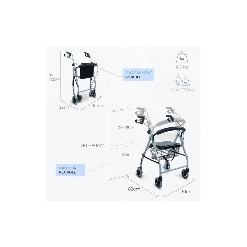 PLIABLE : cette aide technique est pliable, vous pourrez donc sans problème mettre le déambulateur adulte dans le coffre de votre voiture, voire le ranger sans prendre trop de place.